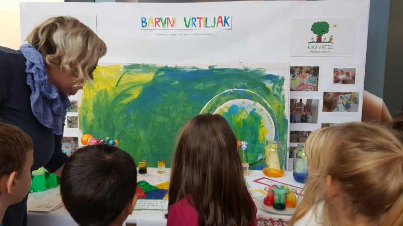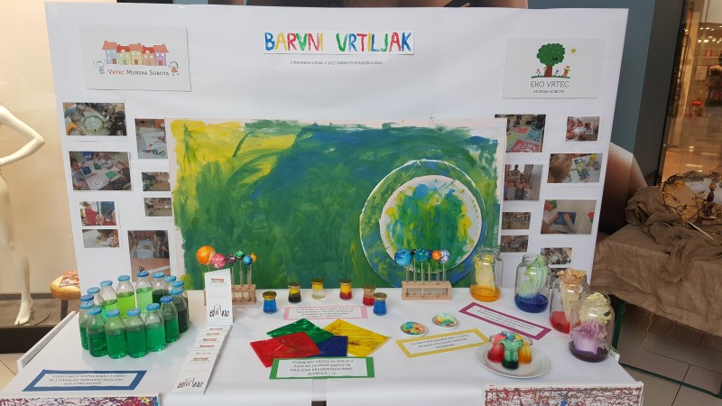 Razstava, ki nosi naslov "Barvni vrtiljak" zajema naravoslovno-matematične vsebine, ki v povezavi z raziskovanjem barv otroke uvajajo v osnove znanstvenega razmišljanja, raziskovanja in preizkušanja, torej v bogat svet otroške domišljije in igre. Že vrsto let aktivno vlogo na festivalu IZUM imajo prav otroci, najmlajši člani naše družbe, ki so na današnjem otvoritvenem dogodku barve vrtca zastopali s pesmijo in plesom.