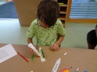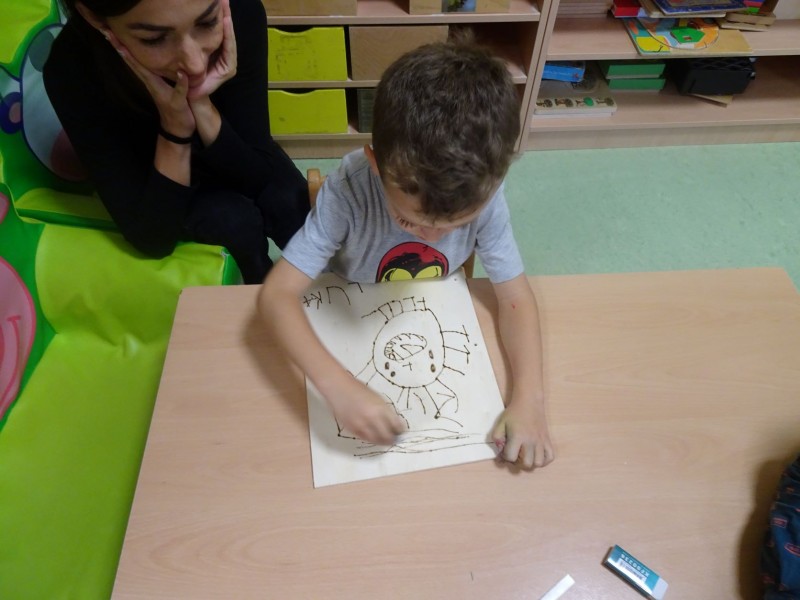 Prisluhnili so pravljici Muca Copatarica in si izdelali lutko. Spoznali so tehniko pirografije in si izdelali vložne mape iz lesa. Delavnice smo zaključili s skupnim ljudskim plesom: Trojka.