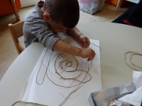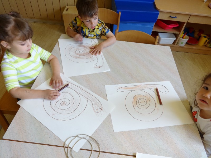Med drugim smo polža oblikovali tudi iz das-mase, ga pobarvali in zvijali vrvico tako kot je zvita njegova hišica.