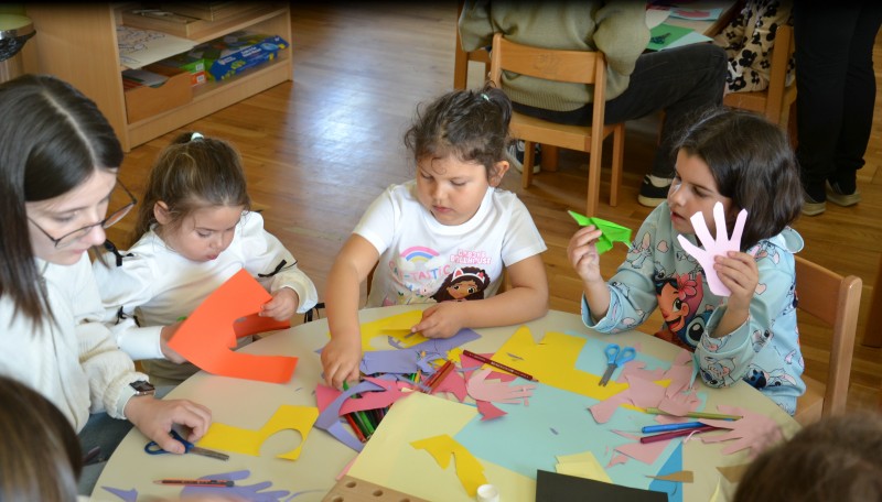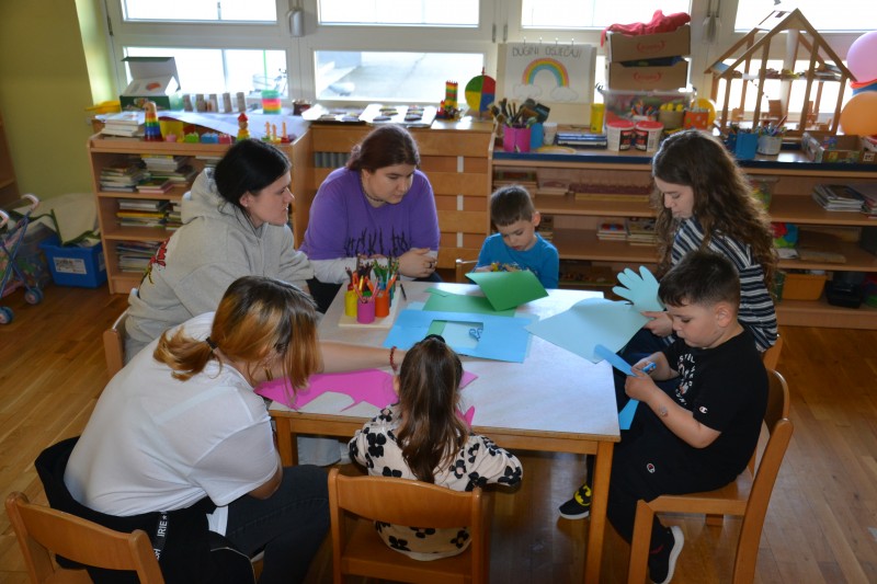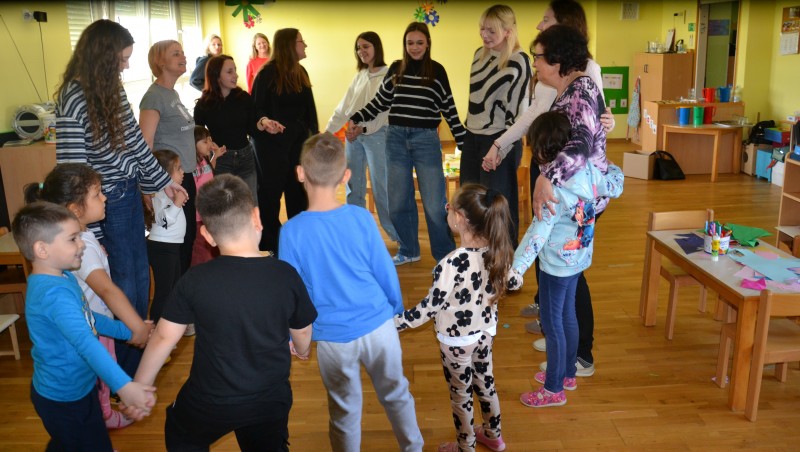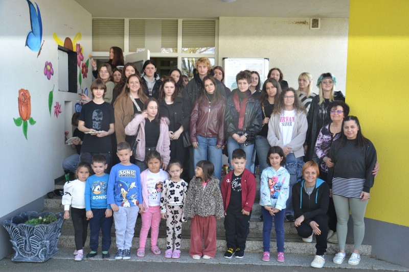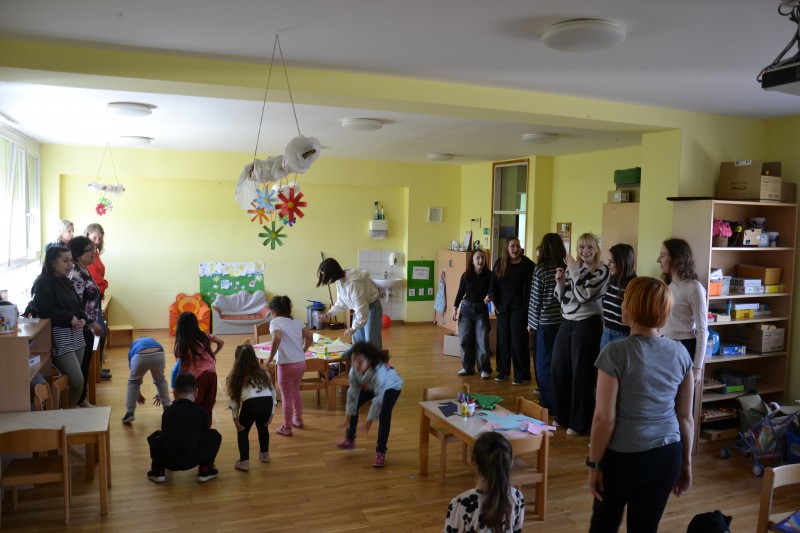 V našem vrtcu smo gostili dijakinije iz srednje poklicne in tehniške šole, ki obiskujejo program tehnik oblikovanja. Skupaj z njimi smo ustvarjali likovne izdelke za naše mamice, popestrile so nam tudi zunanje zidove na našem vrtcu ter se na koncu še podružili ob petju in plesu.