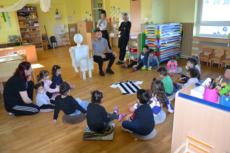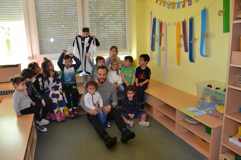 Danes smo v vrtcu imeli prav poseben obisk in sicer nogometaša Mure Žiga Kousa. Predstavili smo mu naš projekt, nad katerim je bil zelo navdušen.