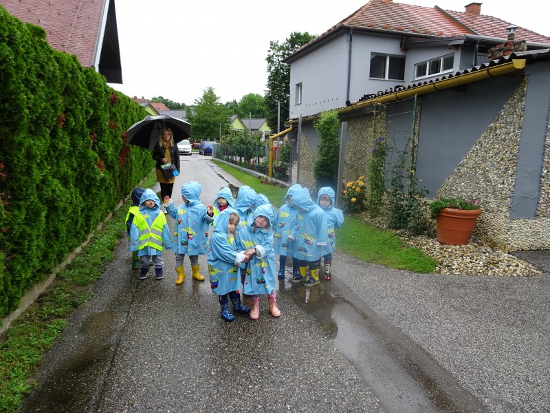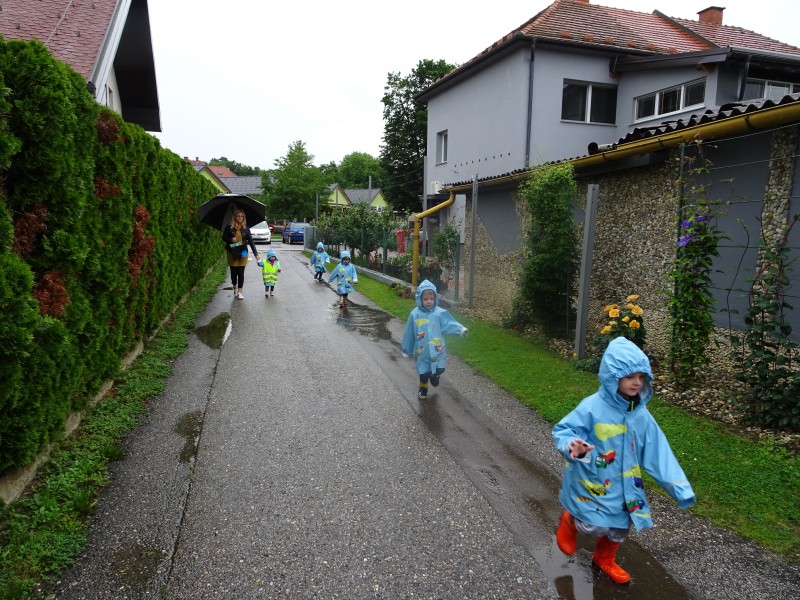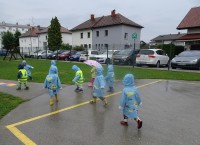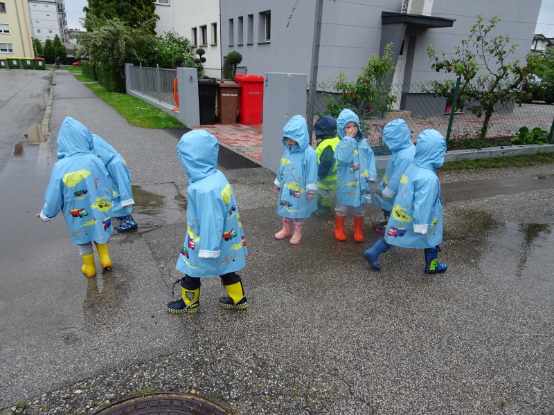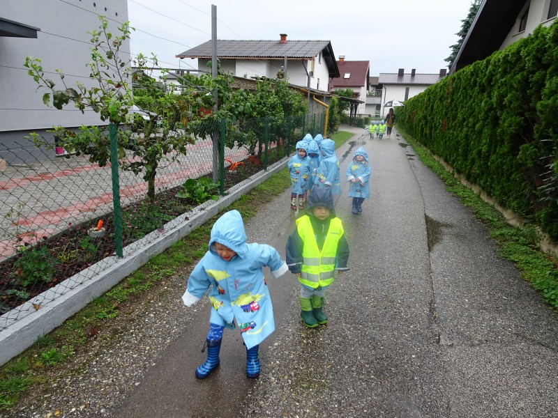 Nas najmlajše v vrtcu, sta dež in luže pritegnili ven.