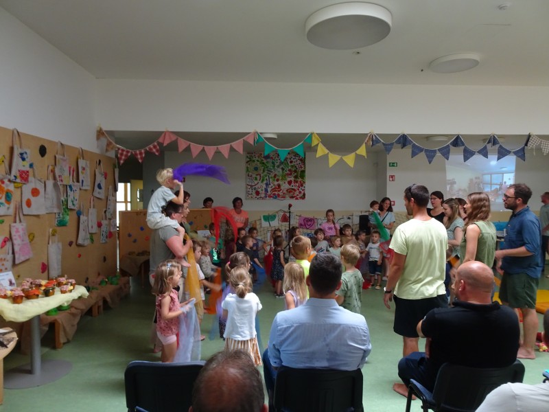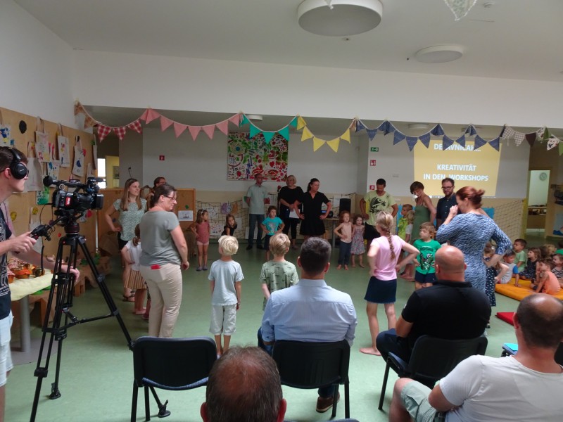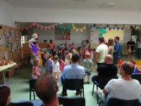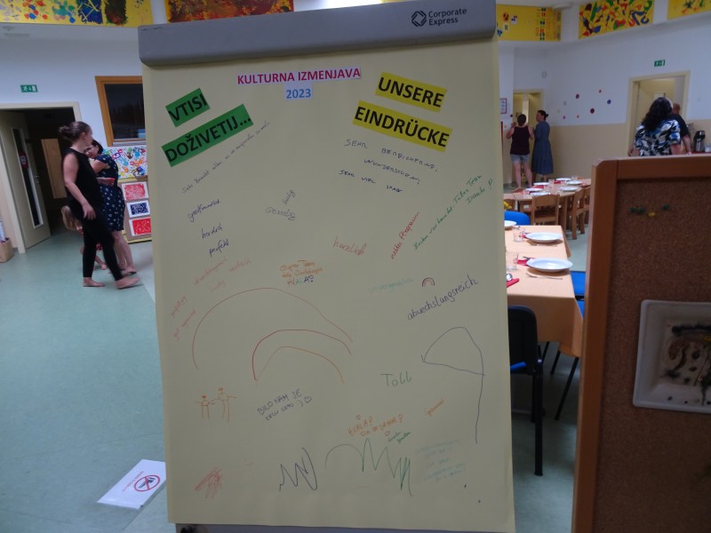 Kulturno izmenjavo smo zaključili s proslavo. Letošnje leto je posebno, saj smo obeležili 20 let skupnega ustvarjanja. Po krajšem kulturnem programu smo otvorili razstavo izdelkov, ki so nastali na letošnji kulturni izmenjavi. Želimo si nadaljnega sodelovanja z vrtcem Alterbach Salzburg.