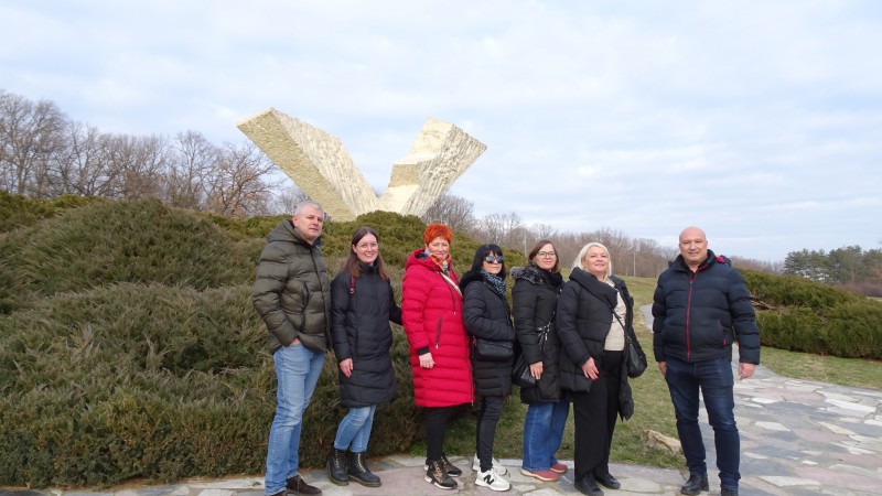 Četrti dan je združil strokovni in kulturno-zgodovinski vidik mobilnosti. V Centru šolske uprave Kragujevac nas je sprejel direktor g. Radojko Damjanović, ki je predstavil njihovo vlogo pri strokovni podpori, nadzoru in zagotavljanju kakovosti v vzgojno-izobraževalnem sistemu. Izmenjava izkušenj je omogočila primerjavo s slovenskim sistemom ter razmislek o različnih pristopih k razvoju kakovosti. Popoldanski del dneva je bil namenjen spoznavanju zgodovine in identitete mesta Kragujevac, s posebnim poudarkom na Spominskem parku Šumarice, kjer se nahaja tudi spomenik narodni herojinji Nadi Naumović, po kateri je poimenovana gostiteljska predšolska ustanova.