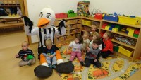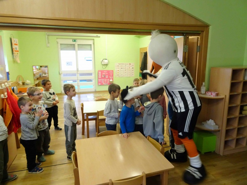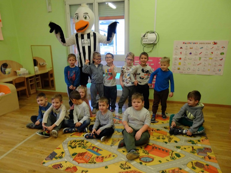 Danes nas je obiskal štrk iz nogometnega kluba Mura, ter nam popestril vrtčevski dopoldan. Otroci smo mu zapeli pesmico, se z njim fotografirali ter se tudi kaj pošalili.