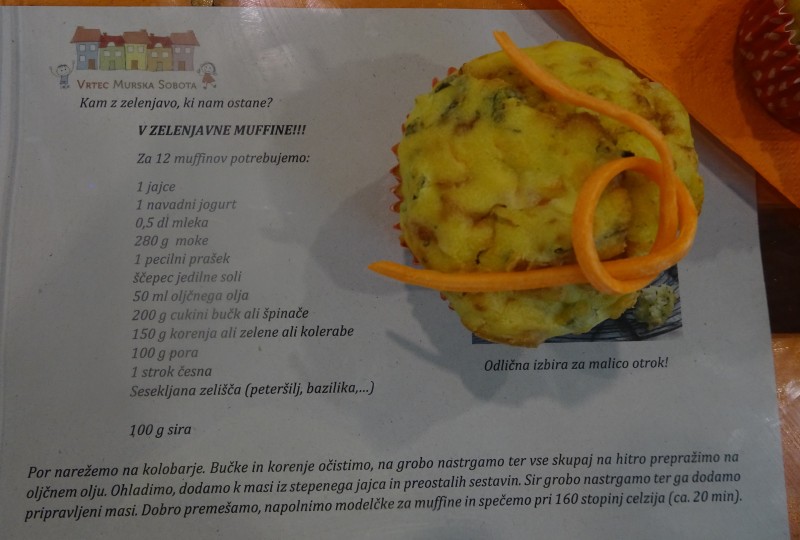 Vedno znova iščemo rešitve kam s hrano, ki ostaja pri posameznih obrokih. Opažamo, da je največkrat zelenjava tista, ki jo otroci ne želijo. Ker se zavedamo, da je zelenjava pomemben sestavni del vsakega jedilnika, jo otrokom ponujamo v raznolikih oblikah. Ena izmed teh so tudi zelenjavni muffini. Če pa pri pripravi sodelujejo še otroci, jim toliko bolj teknejo.
