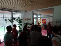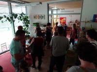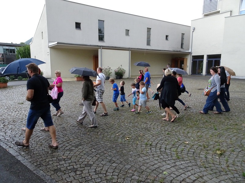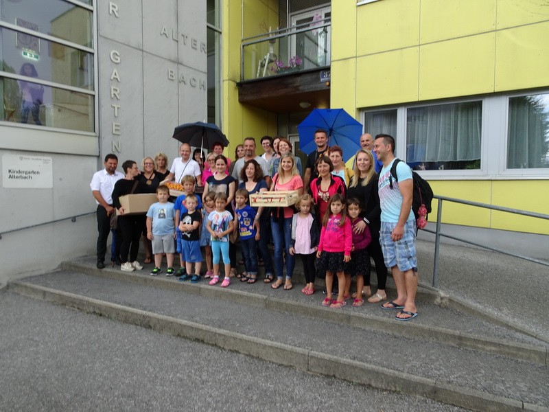 Tako...otroci, starši, stari starši, naš šofer in zaposleni Vrtca Murska Sobota vam ponovno lahko pošljemo pozdrave iz Salzburškega vrtca, kamor smo danes popoldan srečno prispeli in se že veselimo posameznih koščkov k sestavi mozaika letošnje kulturne izmenjave.