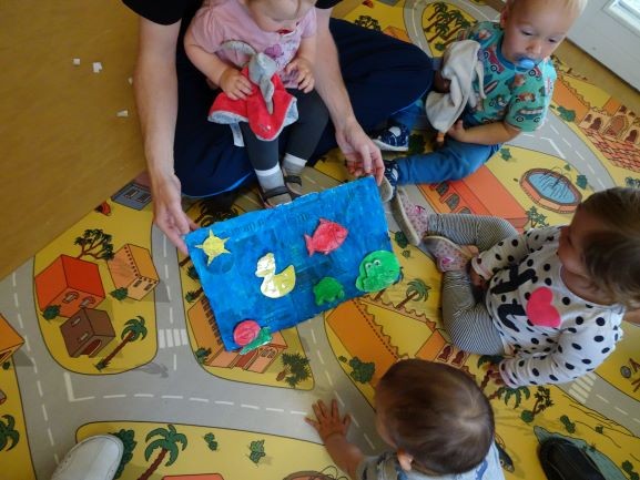 V sklopu sodelovanja v projektu "Sonce, oblak, voda, zrak dajejo življenju na Zemlji svoj pečat", smo otroci skupine 1 - 2 leti spoznali živali, ki živijo v ribniku.