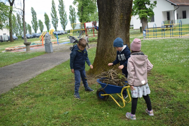 Ob dnevu Zemlje smo se v našem vrtcu skupaj z otroki podali na urejanje okolice. Pridno smo pobirali smeti, odstranjevali odpadle veje ter poskrbeli za našo zeliščno gredico. Otroci so z velikim veseljem sodelovali in se ob tem učili, kako pomembno je skrbeti za naravo in ohranjati čisto okolje.