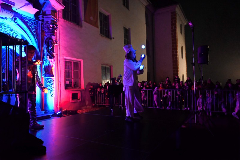 Ko je tema prekrila naše mesto, smo se majhni in veliki z lučkami podali na pot do grajskega dvorišča, kjer smo pričakali Dedka Mraza.